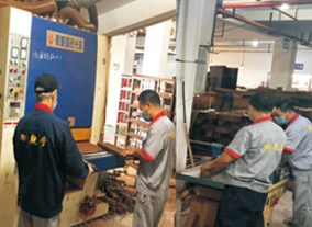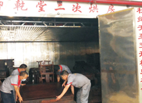 御乾堂紅木在細節上也體現著高水準,僅刮磨這一道工序就有平磨、花磨、拋光等八道工序和十五個作業標準,種種體現出生產管理規范化。